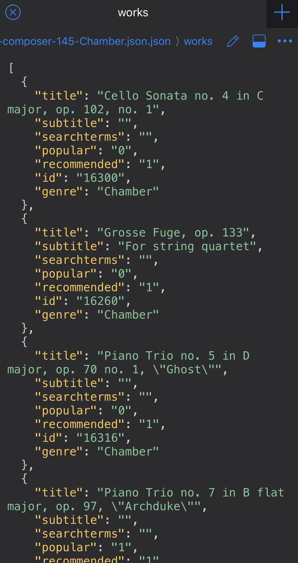 Music metadata is not a new thing, and there are truly incredible projects out there. But most music databases were created with pop music in mind and they aren't suited to classical music at all. Open Opus is a free, open sourced, collaborative database designed for classical music. 200+ composers and their complete works, fully categorized and easily available through a flexible web API. Music streaming, content, retail... if your app needs to deal with classical music, Open Opus can help you.